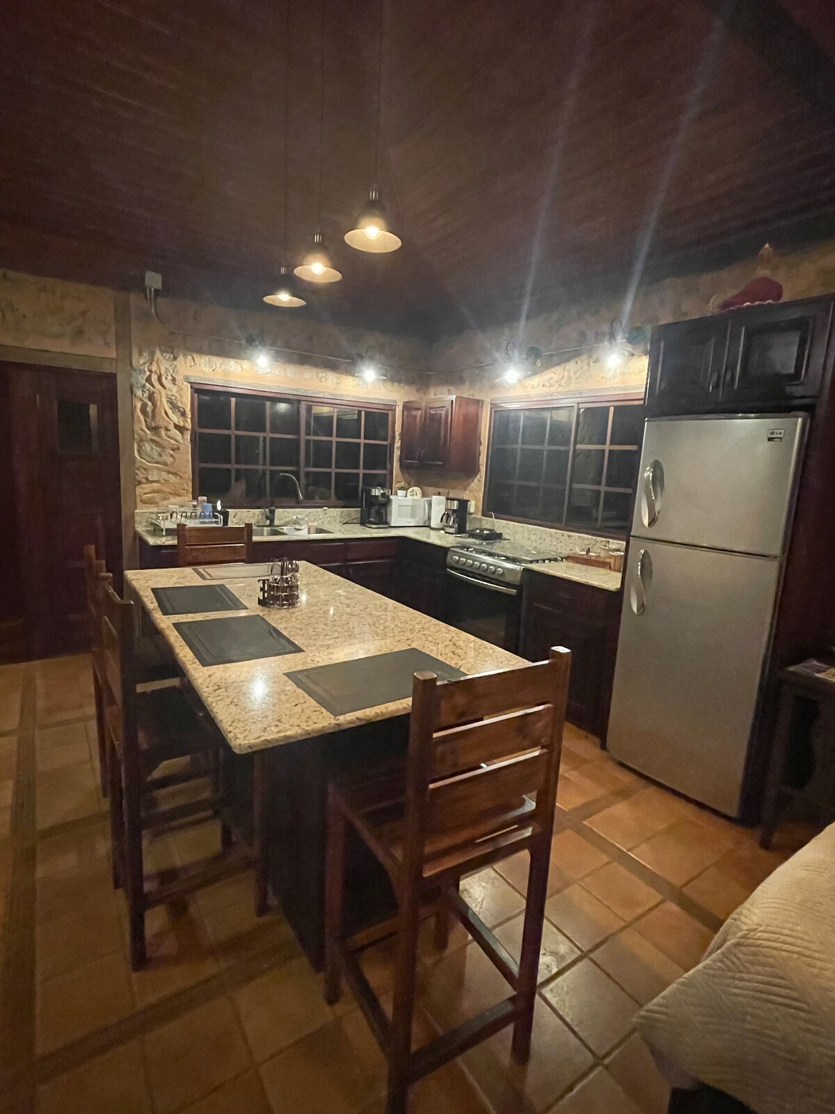 Unwind at Casa Dolly— a cozy renovated cottage on a 15,000 sq ft garden in Volcán, Chiriquí. Sleeps 8 (2 indoor bedrooms + 1 separate shed bedroom). Fully equipped kitchen, flat‑screen TV (cable + streaming), washer, dryer, hot water, and 400 Mbps fiber Wi‑Fi — ideal for remote work. Enjoy multiple outdoor seating areas, fruit trees, a small chicken coop, a secure fenced yard, and free on‑site parking. Five blocks (10-minute walk) to Main Street — perfect for families and nature lovers.
