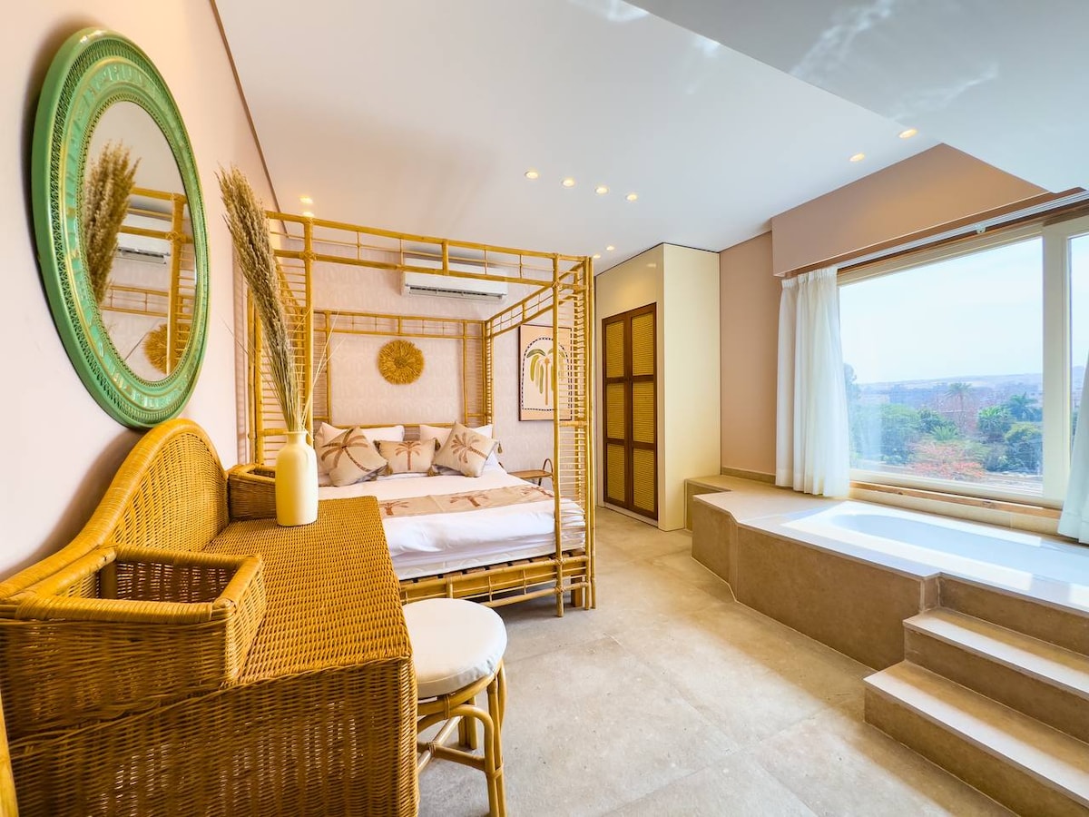 ETERNA.Suite con jacuzzi, vistas a las pirámides y balcón