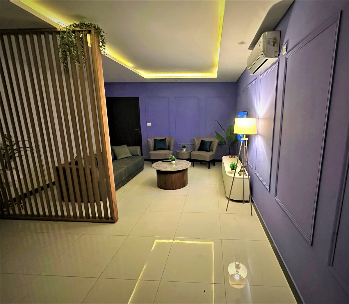 Bienvenido a nuestras elegantes suites de dos dormitorios en DHA 5 Islamabad. Disfruta de la comodidad de un viaje rápido y relájate en un espacio con una decoración encantadora y un cine en casa totalmente equipado. Ideal para viajeros que buscan comodidad y entretenimiento, este acogedor refugio ofrece comodidades modernas en una ubicación privilegiada. Es una porción completamente separada con su propia entrada y estacionamiento separados, apto para familias, por lo tanto, muy seguro y tranquilo. No se permiten fiestas ni música alta. No se admiten parejas solteras