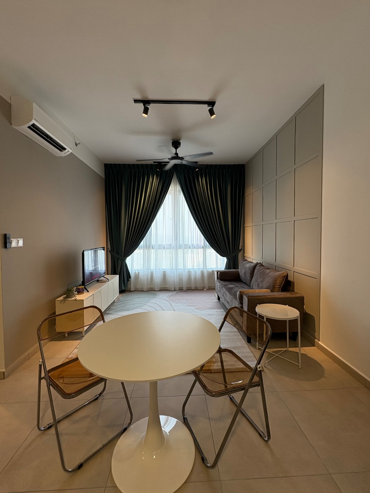 Abre las cortinas del dormitorio por la mañana para revelar una impresionante vista de la ciudad, una vista que también podrás disfrutar desde un práctico escritorio. Los relajantes tonos topo y gris mantienen una sensación sofisticada. Los detalles modernos del baño y la cocina lo convierten en un punto de partida ideal para explorar. Mi apartamento de servicio de un dormitorio de aproximadamente 900 pies cuadrados está totalmente amueblado y equipado con aire acondicionado, con sala de estar, comedor, cocina y dormitorio integrados. Sala de estar: cómodo sofá de 3 plazas, sillón reclinable y TV de pantalla plana para que los huéspedes disfruten de un lugar cómodo donde pasar su tiempo libre. Cocina: ¿Te apetece preparar tu propia comida? No te preocupes, esta cocina moderna y bien equipada tiene todo lo que quieres para preparar tu comida, ya sea para ti o para tu pareja. No te sorprendas de que incluso tenga una lavadora que viene con secadora incorporada. Comedor: una mesa de comedor sencilla y acogedora adyacente a la cocina para servir cómodamente. No dudes en preparar tu propia comida y disfrutar comiendo aquí, así como para compartir una risa y fortalecer las relaciones. Dormitorio: el lugar donde te escondes al final del día para descansar, relajarte antes de dormir. Esta espaciosa y cómoda habitación cuenta con cama tamaño king, vestidor y escritorio, TV de pantalla plana y también acceso privado a un magnífico baño que te ofrecerá un entorno de descanso inolvidable. Por último, pero no menos importante, se proporciona acceso gratuito a internet por wifi para que los huéspedes lo utilicen en mi apartamento y puedan mantenerse en contacto con amigos y familiares o encargarse de sus negocios en cualquier momento. Las instalaciones comunes del Sky Gym, ubicadas en el piso 39, la piscina infinita, las salas de juegos y el parque infantil en el piso 5 que funcionan todos los días de 7:00 a 22:00 h. Pregunta todo lo que quieras. El apartamento se encuentra en el Fraser Residence Hotel, en el centro de Kuala Lumpur. Está a 800 metros de las Torres Petronas y del centro comercial Suria KLCC. En cuanto a la comodidad, la tienda de comestibles está a solo un minuto, el transporte público no solo se puede llegar en unos minutos a pie como la estación de monorraíl Bukit Nanas (5 minutos) y la estación de tren ligero Dang Wangi (7 minutos), sino que los huéspedes también pueden llegar a pie al cercano Centro de Turismo de Malasia (7 minutos), Torres Petronas (18 minutos), Hard Rock Café (8 minutos), Torre de Kuala Lumpur (29 minutos) y muchas otras atracciones. También hay un servicio de autobús público (GOKL City Bus) que ofrece a los pasajeros viajes gratuitos para los viajeros dentro del distrito central de negocios de Kuala Lumpur. Te invitamos a viajar a algunos de los lugares populares como Pavillion, Bukit Bintang, Petronas Twin Tower, Pasar Seni y muchos más... Ofrecemos limpieza gratuita (una vez a la semana) a aquellos que se alojen durante 7 noches o más, que incluye cambio de sábanas, toallas y limpieza básica. (Bajo petición, con un día de antelación) El apartamento se encuentra en 188 Suites en el centro de Kuala Lumpur. Está a 800 metros de las Torres Petronas y del centro comercial Suria KLCC.