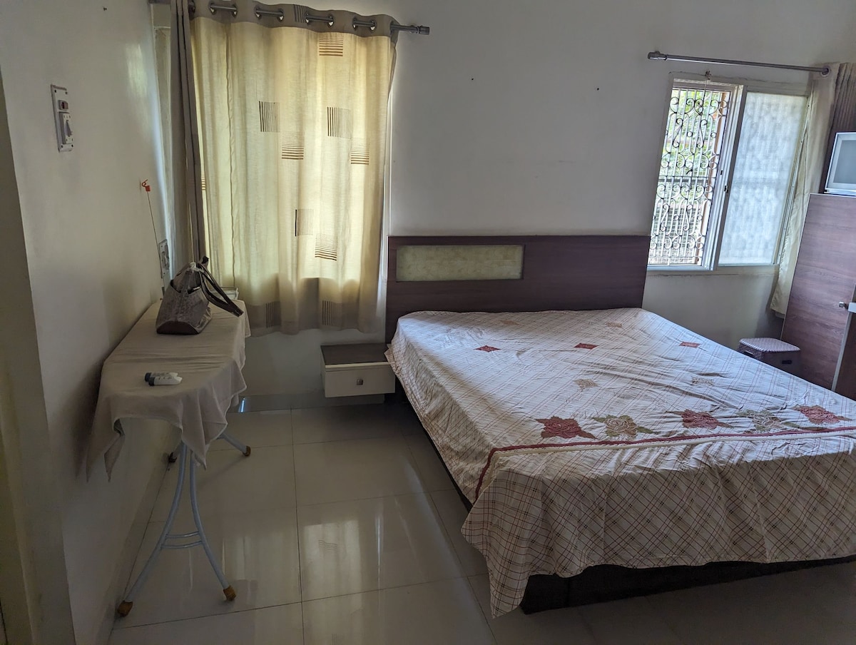 Amplio departamento de 3 habitaciones en el segundo piso con aire acondicionado en todas las habitaciones. Dos dormitorios tienen baños occidentales adjuntos; un baño común tiene un inodoro indio. Todos los baños cuentan con calentadores de agua de 10 litros. Amplia sala de estar con wifi y TV. Cocina con utensilios básicos, ósmosis inversa y nevera. Más allá de 6 huéspedes, hay ropa de cama adicional disponible para huéspedes adicionales. Se admiten mascotas. Se proporcionan toallas y artículos de aseo personal. Se dispone de suministro eléctrico de respaldo básico, ascensor (respaldo temporal) y estacionamiento seguro en la calle. Deben seguirse todas las reglas de la casa.