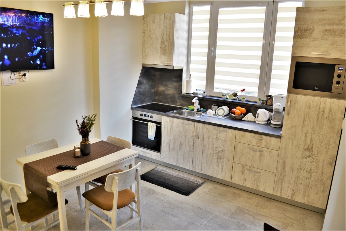 Un apartamento acogedor y elegante en el corazón de Stara Zagora, ubicado en el céntrico bulevar Tsar Simeon Veliki. El alojamiento cuenta con una sala de estar luminosa con una cocina totalmente equipada, un dormitorio cómodo y un baño moderno. La terraza ofrece vistas a la animada calle principal. Hay restaurantes, cafeterías y lugares de interés cultural en las cercanías. Adecuado tanto para turistas como para viajeros de negocios. Registro de entrada autónomo y estacionamiento gratuito alrededor del edificio.
