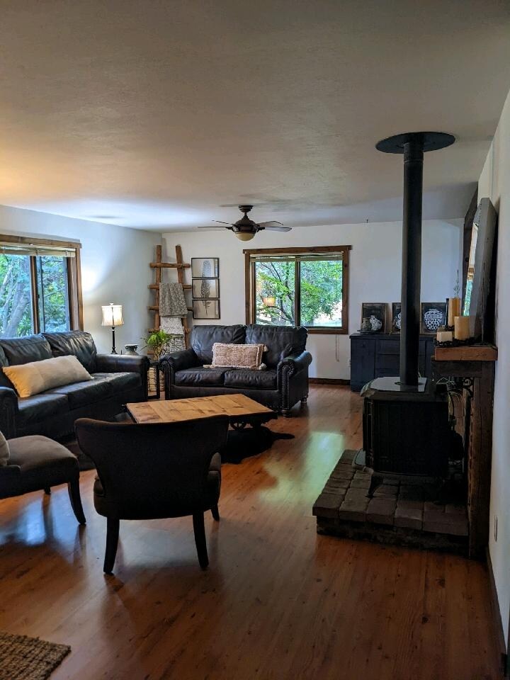 Colócate en el campo en 60 acres con 4 millas de sendero entre los árboles y un arroyo. Tendrás acceso a esta zona natural preservada que es ideal para la observación de aves, ciclismo, senderismo y mucho más. Los alojamientos son una casa de 2 dormitorios que está en el segundo piso con terraza con vistas al arroyo y al área boscosa. Los dormitorios tienen 1 cama tamaño queen, 1 cama completa y un colchón futón.
