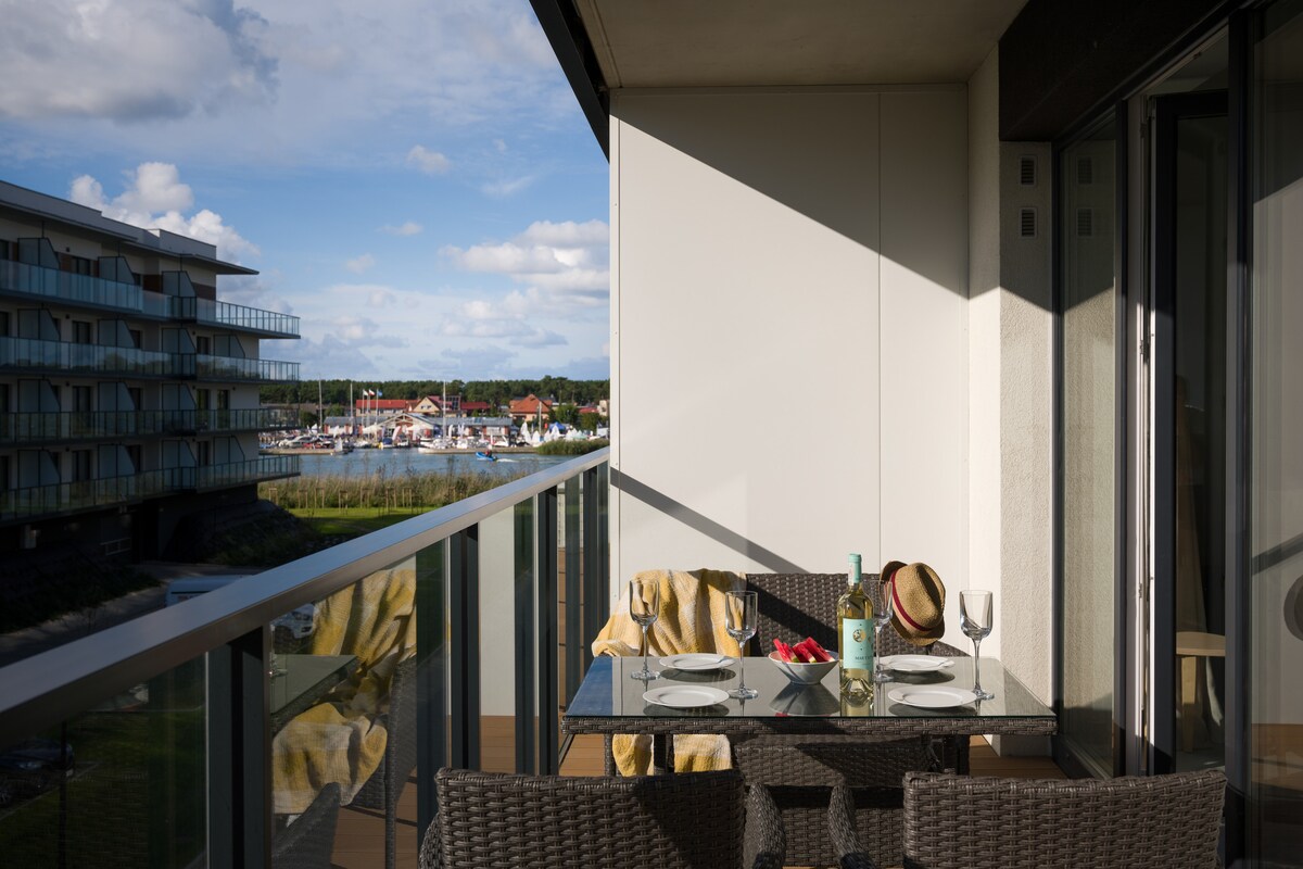 Al mar Báltico para relajarte y dejar que tu alma se relaje, acompañada de cálidos anfitriones que hablan inglés alemán;) ☞ De esta manera ↓ ・Elegante departamento nuevo al estilo Coffee-Cream ・Sauna, piscina y sala de fitness Vista ・mágica del río, el puerto y puestas de sol ・Totalmente equipado. ・Estacionamiento gratuito en el garaje subterráneo ・Amplio balcón + terraza ・Parque infantil ¿Tienes curiosidad? → Ponte en contacto con nosotros :) Estaremos encantados de ayudarte a planear tus próximas vacaciones ”.