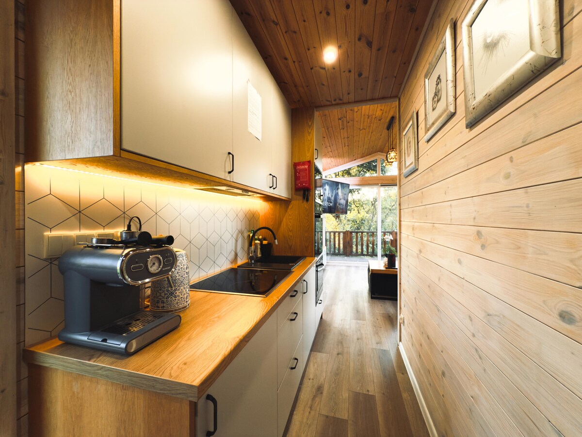 * Lamentablemente, hay un sitio de construcción en la propiedad vecina y puede haber ruido de construcción. Minicasa con terraza y estacionamiento Arriba, encontrarás un dormitorio acogedor con una cama doble y una cuna, ideal para familias pequeñas. La sala de estar y el comedor de planta abierta en la planta baja ofrecen una cocina bien equipada con nevera, estufa y cafetera. Baño con ducha y inodoro. Nota: No es apto para niños pequeños debido a las escaleras abiertas Se incluye🚗 un espacio de estacionamiento en la propiedad.