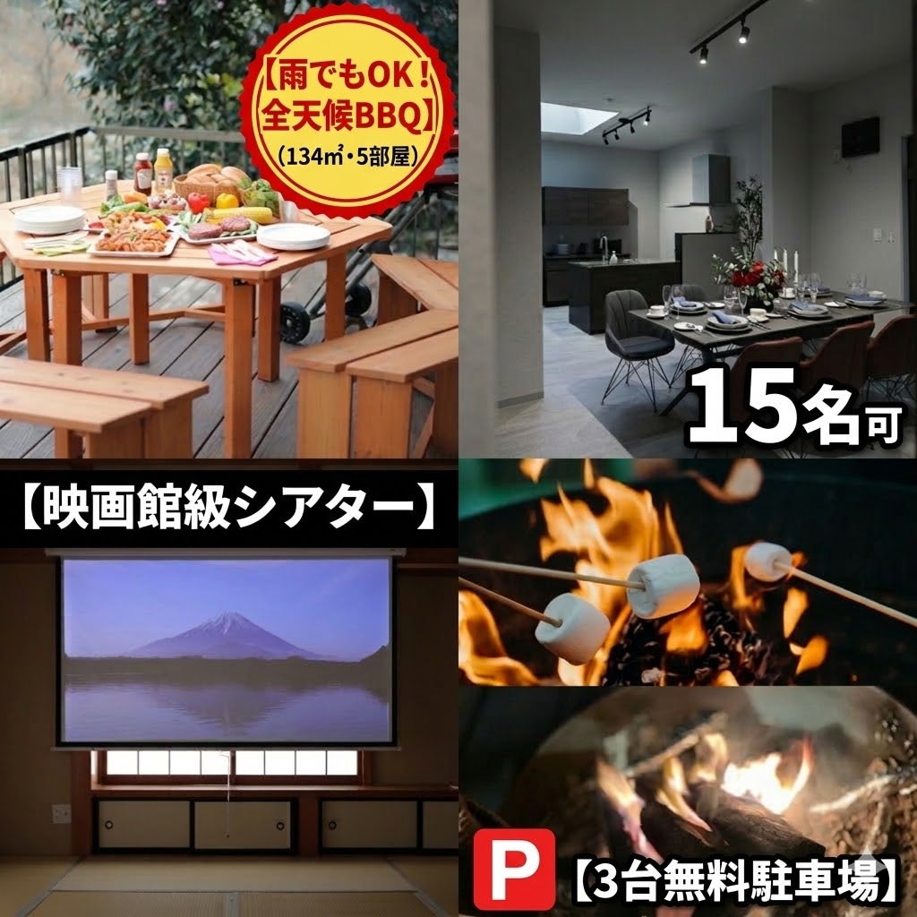 [Uno de los alojamientos más grandes de Hakone, con 134 m²] Barbacoa y fogata incluso bajo la lluvia | Capacidad para 15 personas | Sala de cine | Fácil acceso en autobús en 1 minuto