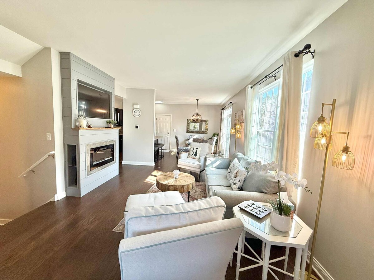 Ubicado en un vecindario tranquilo y encantador, este moderno refugio de dos pisos ofrece la combinación perfecta de comodidad, estilo y conveniencia. Tanto si estás aquí para una escapada de fin de semana como si es una estancia más larga, te sentirás como en casa en este espacio cuidadosamente diseñado. La casa cuenta con una acogedora cocina totalmente equipada, comedor, sótano terminado con lavadora y secadora, espacio de trabajo dedicado, patio privado, columpio en el porche y garaje/estacionamiento gratuito en la calle.