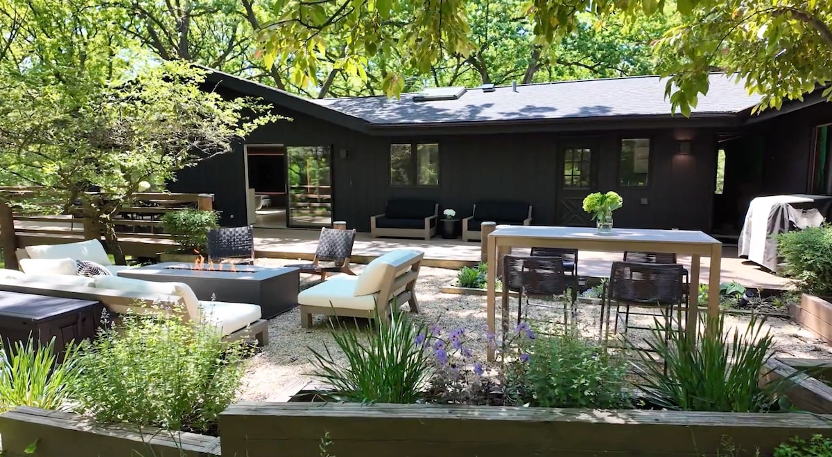 Oasis al aire libre, cama tamaño king, chimenea, cerca de la ciudad, EV