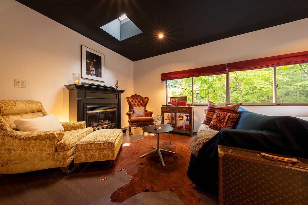 Forest Garden Happodai cuenta con una ventana de 7 metros de ancho que se abre al bosque. Esta villa de todo el alojamiento se encuentra en un bosque privado, que ofrece una estancia tranquila con familiares, amigos y tu perro. Disfruta de la sala de estar rodeada de árboles, una terraza para reuniones de fuego y un espacio cubierto al aire libre. ✴︎ Estufa de leña incluida. ✴︎ Se proporciona una bolsita de té de cortesía. ✴︎ No se proporcionan condimentos. ✴︎ Por favor, infórmanos del número de mascotas. ✴︎ Los juegos de sauna y fogón/parrilla son opcionales; pregunta después de reservar.
