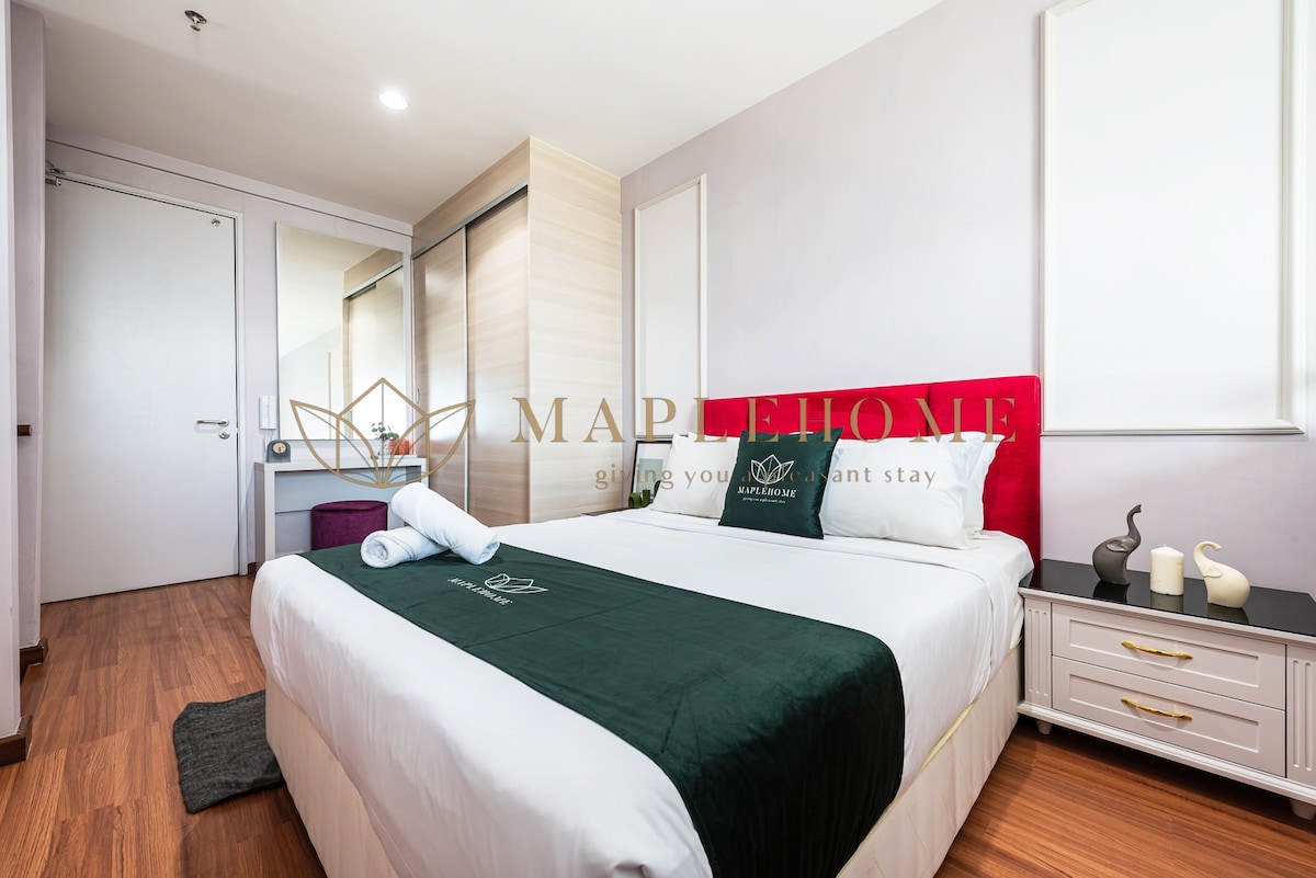 Un apartamento Muji de 2 dormitorios y 2 baños con balcón, equipado con dos camas dobles. Apto para 2 a 4 huéspedes. Cada baño ofrece agua fría y caliente para una experiencia relajante en la ducha. Las instalaciones incluyen: Ollas, sartenes, utensilios Gel de ducha, champú, lavado a mano, líquido para ropa y suavizante Refrigerador, microondas, hervidor, arrocera, lavadora/secadora TV LED, TV, secador de pelo, plancha y tabla de planchar Filtro de agua. Wifi de alta velocidad gratuito (500 Mbps) 1 lugar de estacionamiento