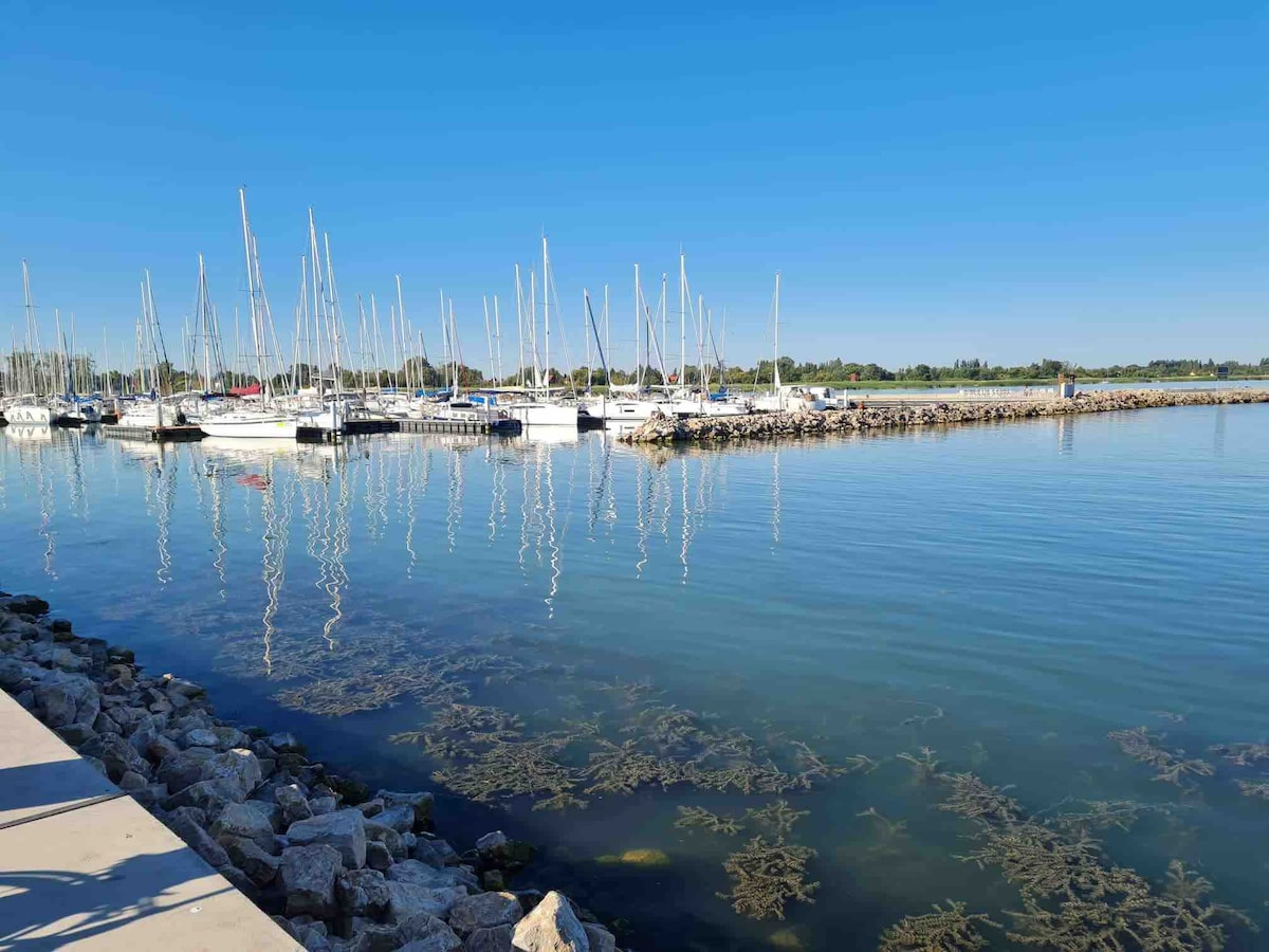 La encantadora casa de Zsuzsa es una casa de playa doble. Hay nevera, horno microondas, tostadora, cafetera, calefacción, peluquería, plancha, plaza de aparcamiento cerrada, máquina de soplado, muebles de jardín, barbacoa . café ,té, mermeladas: playa natural a 500 metros de la casa - Hay una playa libre cerca de la casa,muy simple, pero a 2 minutos a pie :)