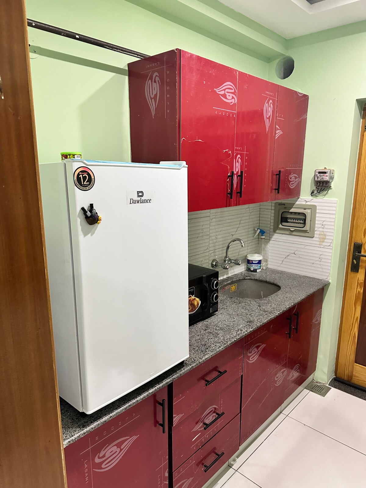 👑 Te damos la bienvenida a Gold Crib Apartments & Residence. Te presentamos GoldCrib Midnight Studio. Un moderno apartamento tipo estudio ubicado en el corazón de Bahria Town, diseñado con una elegante combinación de colores oliva y negro. Características principales: ✅ Interior moderno en tonos oliva y negro ✅ Wifi y TV inteligente ✅ Estudio con baño integrado ✅ Cocina pequeña equipada ✅ Auto check-in ✅ Estacionamiento gratuito y acceso con ascensor ✅ Aire acondicionado ✅ Asistencia 24/7 ✅Gimnasio en el edificio 📍 Cerca de lugares para comer, bancos y las principales atracciones de Bahria Town.
