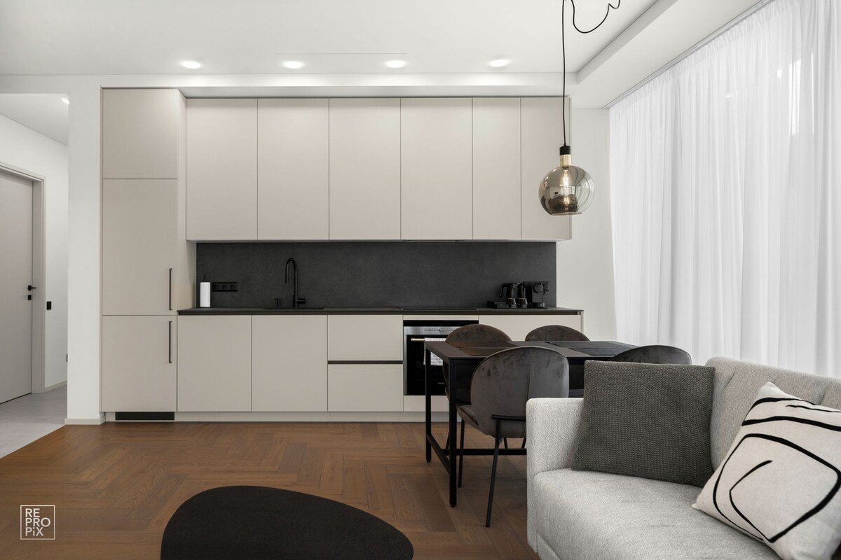 Moderno apartamento con espectaculares vistas de Kaunas. Ubicados en el prestigioso proyecto 'Kaunorama', estos apartamentos amueblados contemporáneos ofrecen una comodidad impecable y una vista impresionante de Nemunas y el casco antiguo de Kaunas.