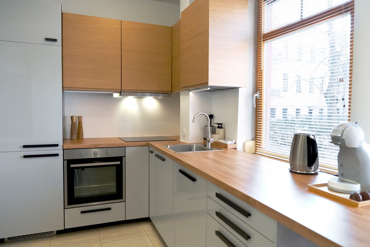 Apartamento de 1 dormitorio totalmente amueblado en el centro de la ciudad de Kaunas. A pocos minutos a pie de tiendas, bares, restaurantes y museos. A 15 minutos a pie de las estaciones de autobús y tren, a 10 minutos a pie del parque Azuolynas. El apartamento tiene 40 m2 y puede alojar cómodamente hasta 4 personas. Cuenta con una cama de 1,6 x 2 m en el dormitorio y un sofá cama extraíble en la sala de estar. La cocina está totalmente equipada con todo lo necesario para preparar tus comidas (nevera, lavavajillas, fogones, horno, hervidor de agua, microondas, etc.). Smart TV y wifi.