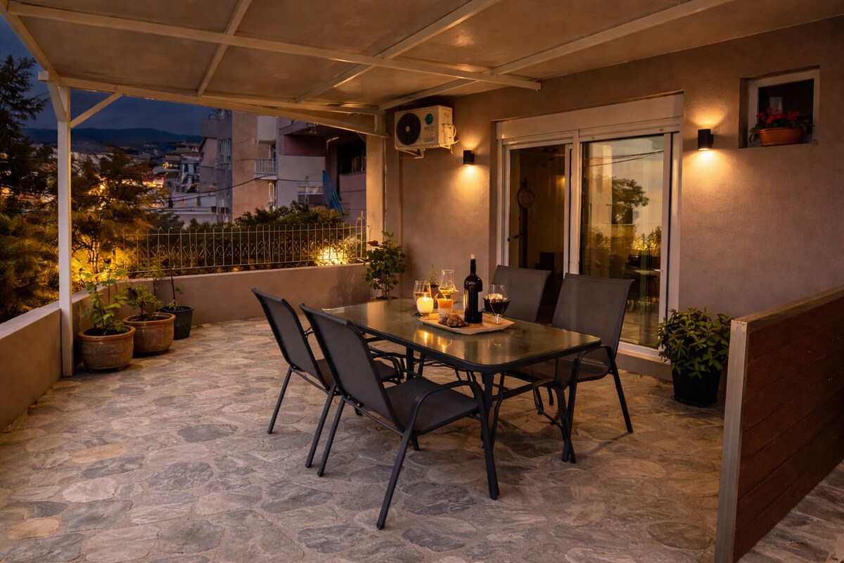 Elegante apartamento nuevo, con una gran terraza y vistas. Se encuentra en un barrio tranquilo, a solo 5 minutos a pie del centro de Kavala. Consta de 1 dormitorio, salón, cocina con electrodomésticos nuevos, totalmente equipada y baño. Puede aparcar su coche delante del apartamento, en la calle, de forma gratuita. Relájese y disfrute de su estancia. Consulte nuestro apartamento contiguo si no hay disponibilidad o si viaja con amigos ZEST airbnb.com/h/zestcozyliving