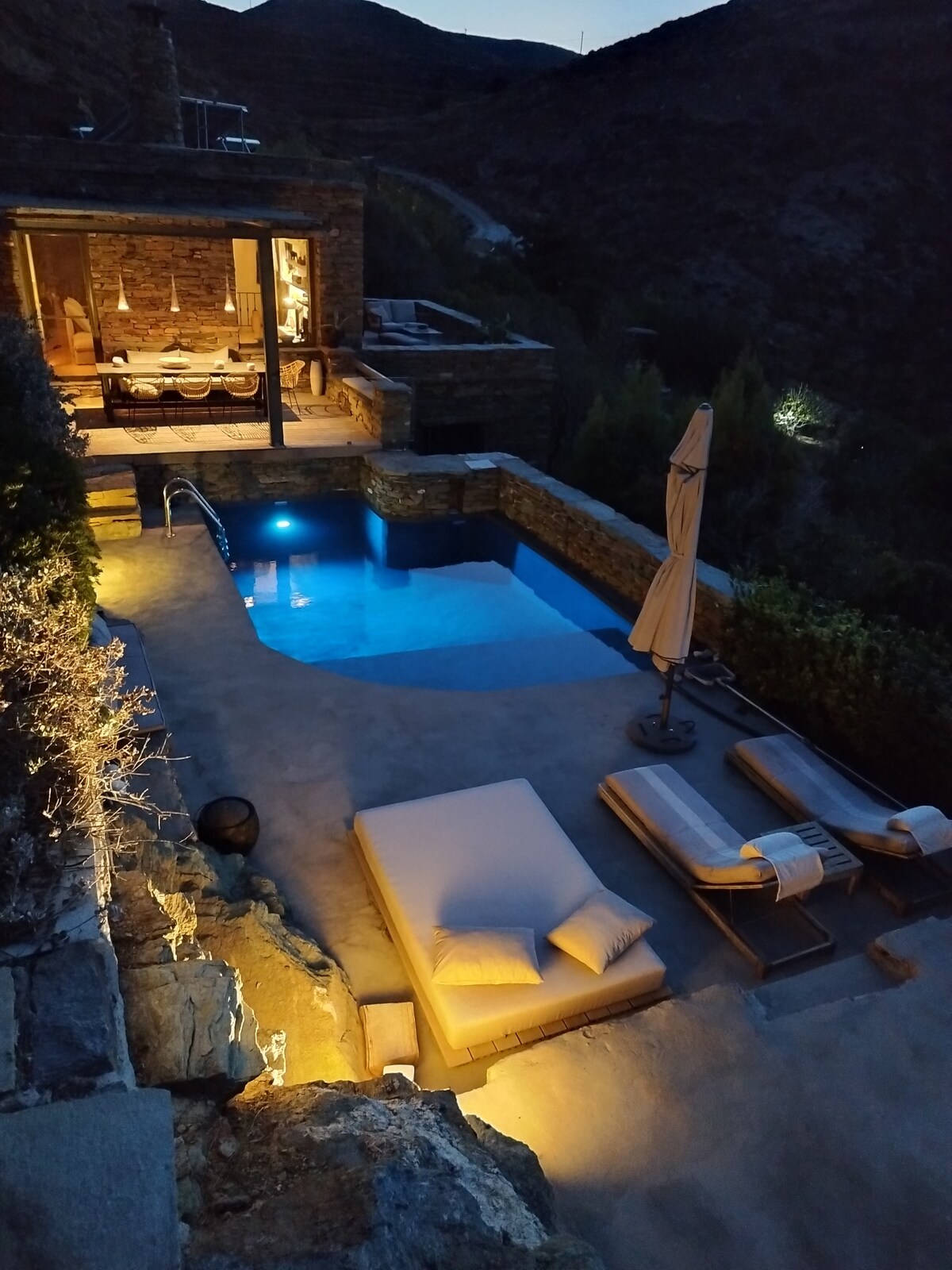 Kydippi, construido en piedra, parece que se ha escalado en medio de una ladera de montaña, creando las condiciones de relajación y tranquilidad. Los espacios interiores y exteriores elegantes y únicos te ofrecen mucha hospitalidad y la comodidad que necesitas para tus vacaciones. Cerca de los lugares cosmopolitas de la isla, pero lejos de las multitudes, te invita a crear tus propios recuerdos.