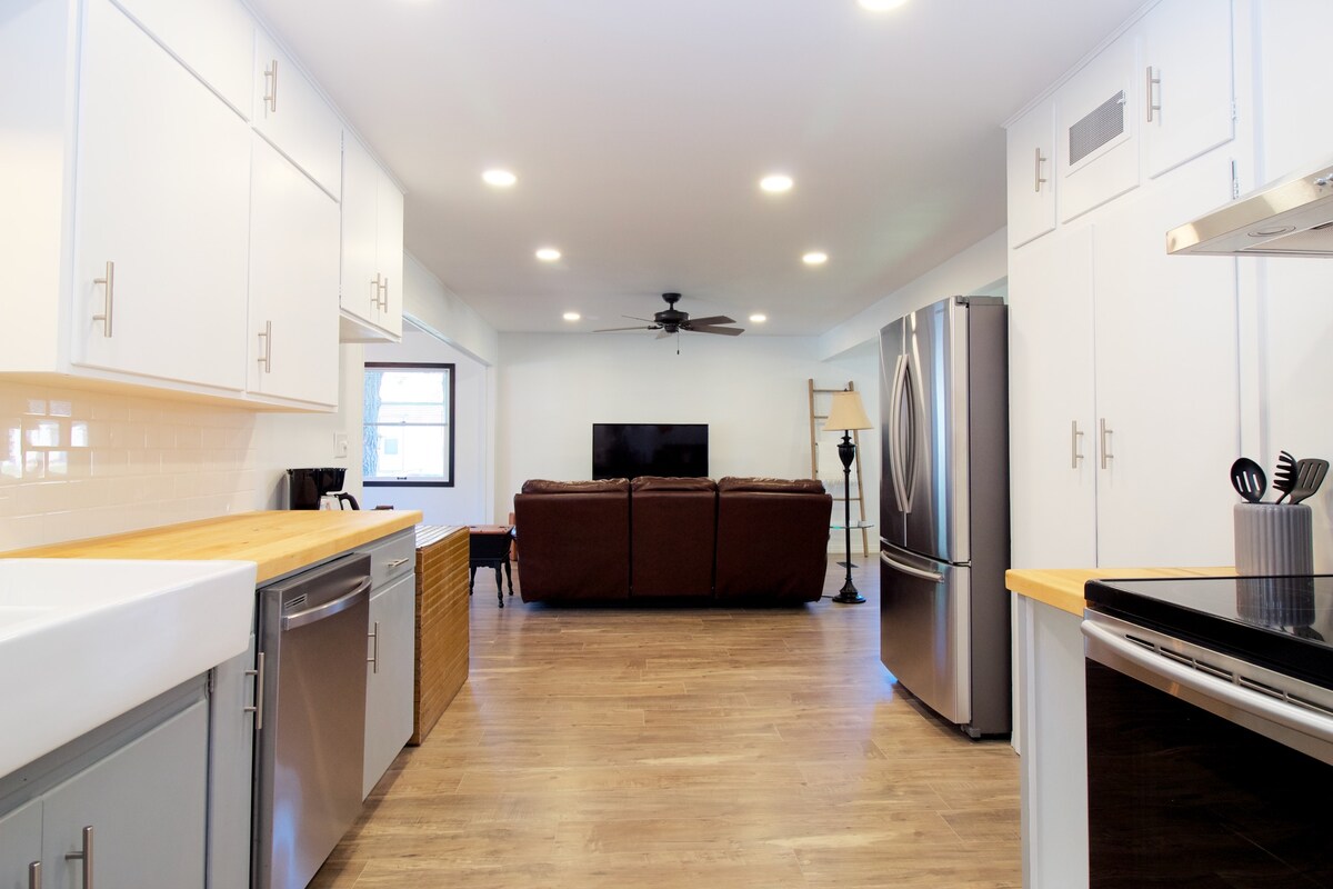 Esta hermosa casa ha sido completamente remodelada con mucho carácter. Ubicado en el centro de la ciudad, los huéspedes tienen fácil acceso a todo Kearney. El acogedor patio trasero con valla de privacidad cuenta con jacuzzi, zona de estar y plancha al aire libre. La mesa y las encimeras personalizadas hechas de madera de 125 años de antigüedad proporcionan una sensación rústica en un espacio habitable moderno. Todo en la casa es nuevo: suelos, armarios, electrodomésticos, muebles, etc. El garaje adjunto para 2 coches está disponible para los huéspedes.