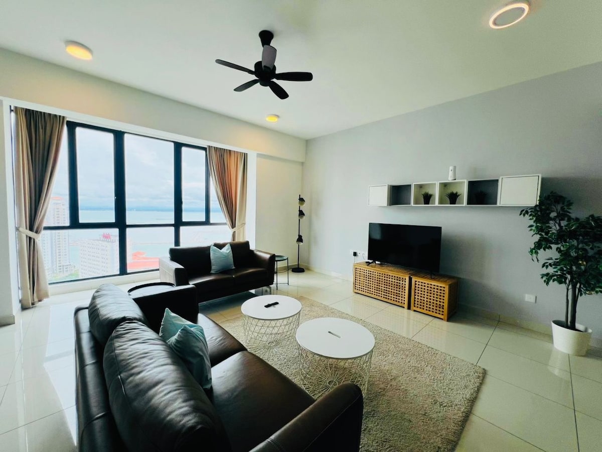 WiFi gratuito, equipado con cerradura inteligente, calentador de agua, aire acondicionado, microondas y filtro de agua que puede beber agua fría y caliente inmediatamente. También hay 2 lugares de estacionamiento gratuitos. Muy cerca de Karpal Singh, a 5 minutos de Georgetown con excelentes vistas al mar y a la ciudad. Podrás ver el puente de Penang, vista al mar, Komtar desde esta unidad. Ubicado en el piso 36 también. Si necesitas algo, puedes charlar conmigo, porque me quedo cerca.