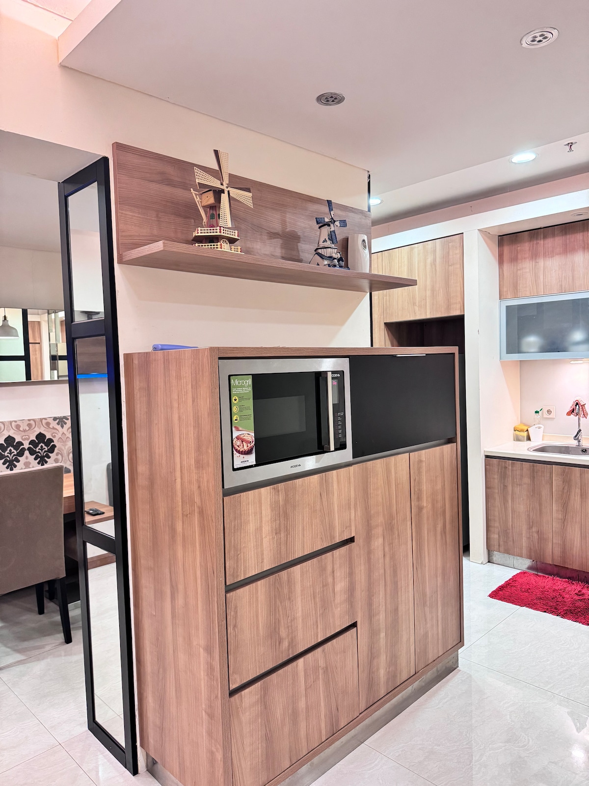 Departamento moderno y acogedor de 1 dormitorio ubicado en el corazón de Kemayoran, a pocos minutos de JIExpo y JIS. Esta unidad de 33 metros cuadrados está totalmente amueblada y cuidadosamente diseñada para mayor comodidad y conveniencia. Cuenta con una sala de estar luminosa, una cocina funcional, un baño limpio y una habitación cómoda. Ideal para profesionales o parejas que buscan una ubicación estratégica con fácil acceso al transporte público, centros comerciales y restaurantes.