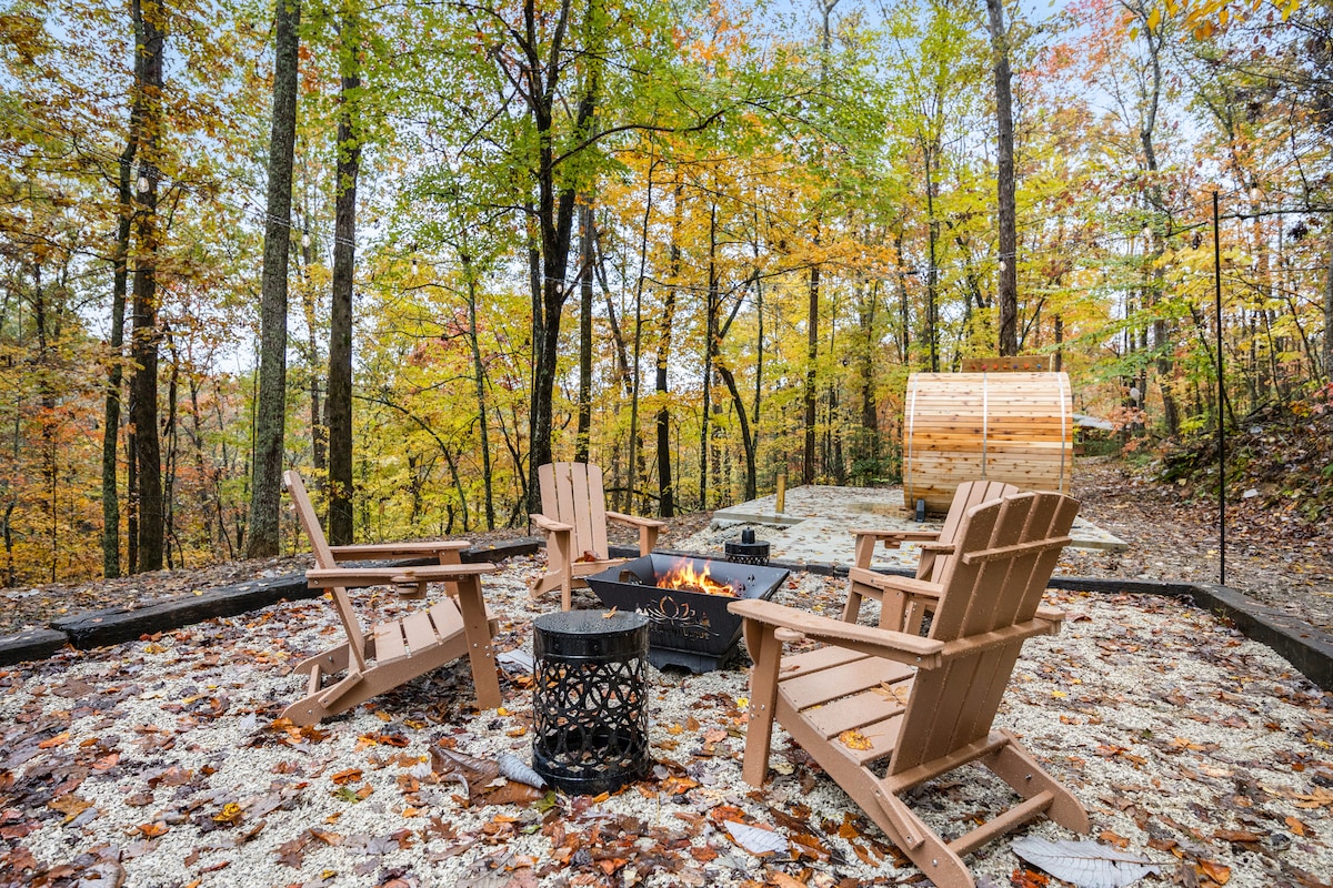 ¡Lil' Red A-Frame con sauna de barril al aire libre!