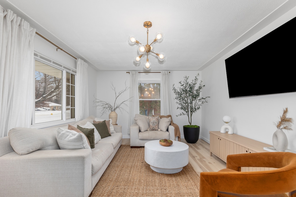 Justo al lado de la autopista principal US-131, esta casa recién remodelada cuenta con una bañera de hidromasaje para 5 personas en un hermoso patio al aire libre con vistas a un enorme patio trasero. ¡Terra Sol está equipada con comodidades modernas que incluyen aire central, sala de estar grande con capacidad para 6 personas! ¡Disfruta jugando en la habitación Sol, una comida casera desde la espaciosa cocina! A 10 minutos del centro de Grand Rapids y a solo 15 minutos del Aeropuerto Internacional GRR Ford, todo lo que necesitas está a tu alcance.
