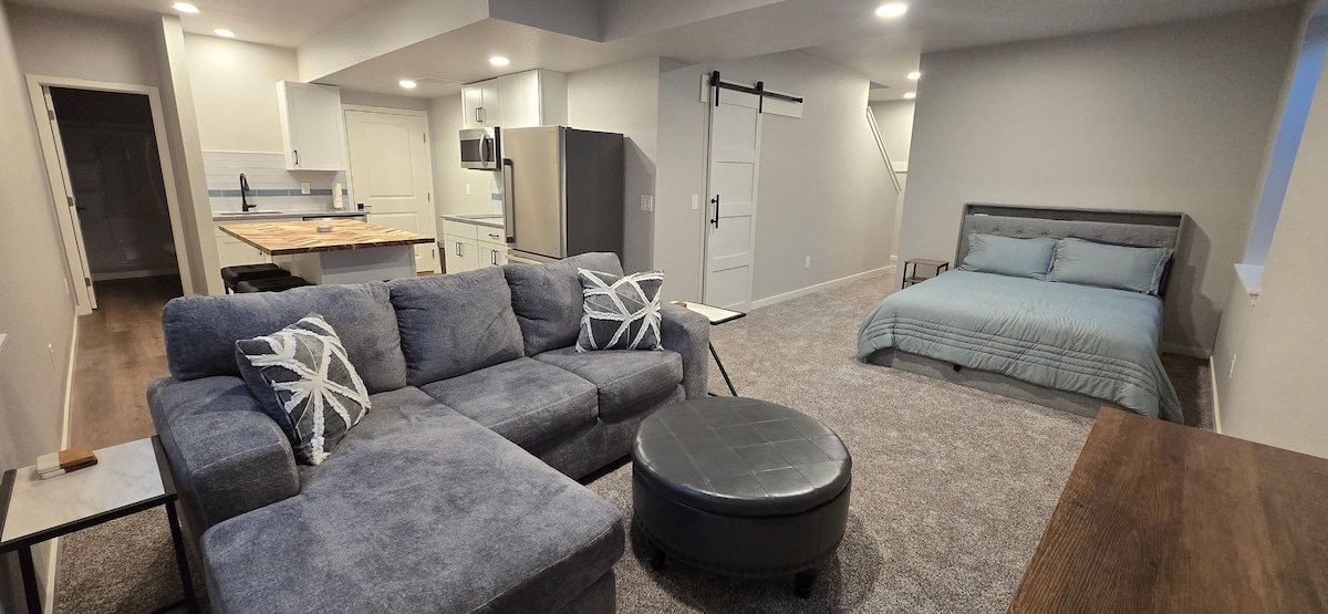 Nueva suite en el sótano de 480 pies cuadrados solo para ti. Un hogar acogedor lejos de casa. Llegada fácil a través de la puerta compartida del garaje y la entrada privada al sótano. Cuenta con un dormitorio principal con cama tamaño queen, baño privado, habitación adicional con 2 literas individuales y escritorio. La sala de estar tiene un sofá cama y una cocina pequeña. Estamos en un barrio tranquilo con fácil acceso a senderos, cerca de áreas comerciales y la I-25. El anfitrión vive arriba y está disponible para ayudarte y quiere que tu estancia sea cómoda y agradable.