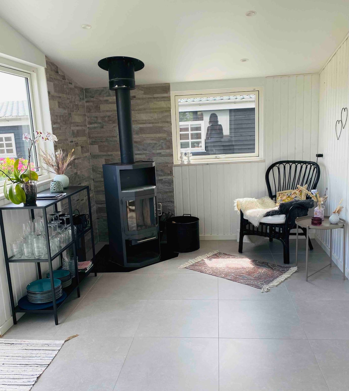 Relájate en esta casa única y tranquila, ubicada a solo 25 metros de la orilla del agua. La casa está decorada con tranquilas tendencias nórdicas, que le dan a la casa la sensación de estar en casa en un entorno habitual. Hay un rincón acogedor cerca de la chimenea, además, es posible sentarse con tareas creativas o abrir la computadora en el escritorio de la casa en el pasillo. La claraboya en la cocina, con su función de apertura/cierre, da la posibilidad de escuchar la ducha del agua cuando el clima lo permite. ¡Una casa para experimentar!