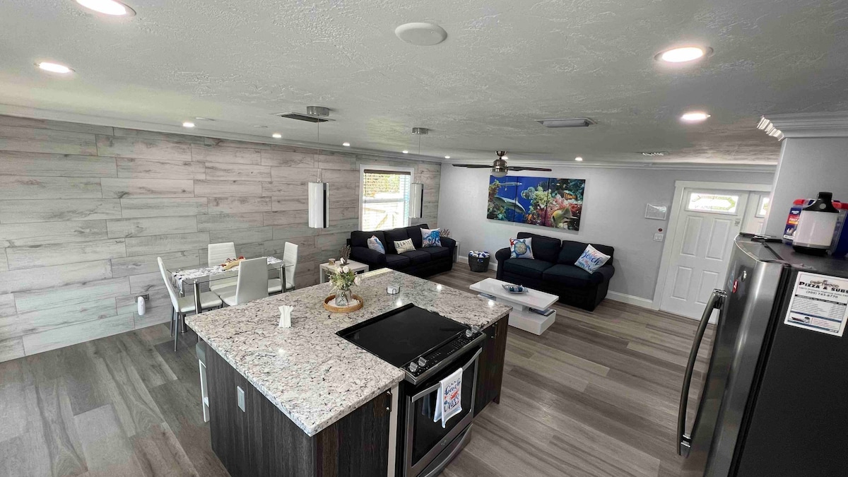 ¡Disfruta de la vida frente al agua en Key Largo! Observa cómo pasan los barcos con capturas frescas que se sirven diariamente en los restaurantes locales. Contempla manatíes, tiburones nodriza y peces nadando junto al canal todo el día. Enciende tu barco en el Pilot House Marina, justo al final de la calle. Nuestra unidad es moderna, espaciosa e impecable con estacionamiento privado, wifi rápido, netflix, aire acondicionado frío, almohadas de felpa y una cama acogedora. Estamos en un canal principal para abrir el océano. Cerca de Rodriguez Key, Mosquito Bank, Cristo del Abismo y muchos naufragios hundidos para explorar.