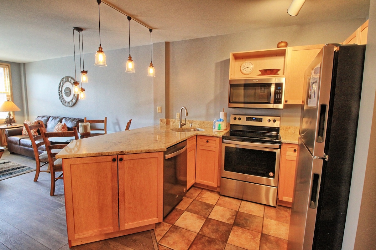 ¡Bienvenido a nuestro luminoso apartamento de 1 dormitorio en el corazón de River Run Village (Keystone Mountain)! ¡Evita los autobuses hasta los remontes, ya que este apartamento está a 3 minutos a pie de la telecabina! Este apartamento tiene capacidad para cuatro personas y cuenta con un dormitorio privado con cama tamaño king, así como una unidad actualizada con encimeras de granito. Disfruta de tu bebida favorita mientras tomas el sol y vistas espectaculares de las pistas, ya sea en el interior calentado por el fuego o en el exterior en tu propio balcón privado.