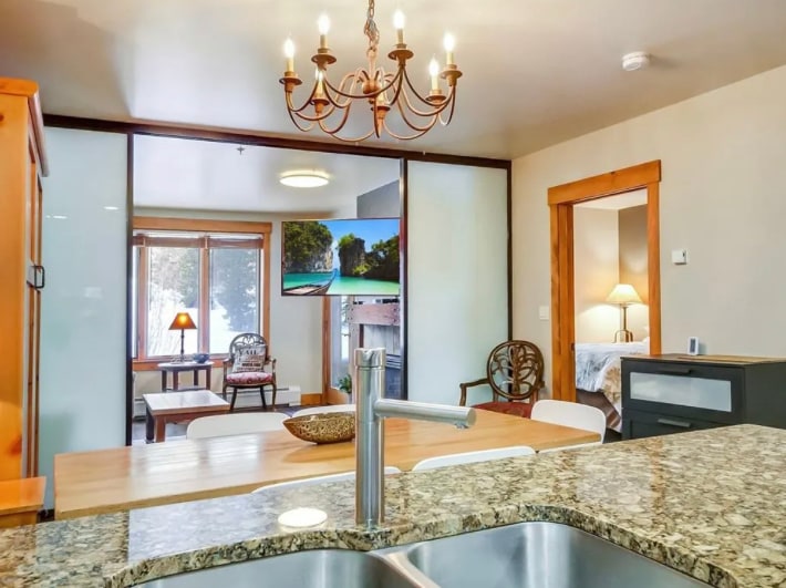 ¡Te damos la bienvenida a nuestro alojamiento! Estamos muy contentos de compartir nuestra casa de vacaciones contigo. ¡Este lugar está justo en el lago Keystone! Las ventanas de gran tamaño que tenemos aseguran que tengas la mejor vista del lago y las montañas en el fondo. En invierno, el lago se convierte en una pista de patinaje sobre hielo operada por el Adventure Center. Este alojamiento no es apto para niños y solo tiene capacidad para 2 adultos. No dudes en ponerte en contacto con nosotros si tienes alguna pregunta. (Permiso para estadías de corta duración n.º STR20-00371)