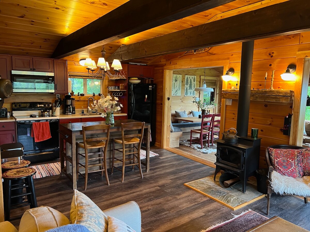 Casa de huéspedes de nueva construcción sobre el garaje del propietario con increíbles amaneceres y excelentes vistas. La propiedad se encuentra en 36 acres, el propietario vive en el sitio en una casa separada con sus 3 perros, 1 gato excepcionalmente perezoso y 4 gallinas salvajes (¡todos pueden venir a visitarte!). Los terrenos tienen manzanos antiguos, un montón de jardines perennes con más en progreso, bayas y un huerto orgánico que nos encantaría compartir si lo deseas. ¡No dudes en preguntarnos cualquier inquietud o dudas que tengas! ¡Esperamos conocerte pronto!