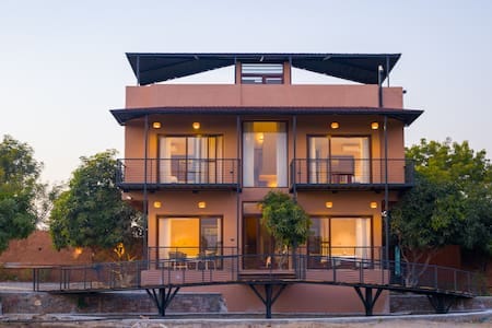 Escápate a nuestras casas de campo de estilo vintage, enclavadas en un pintoresco entorno natural, que ofrecen un refugio acogedor y romántico. Un sendero pintoresco te guía a la piscina y a las impresionantes vistas de las orillas del lago Udai Sagar. Despierta con las fascinantes vistas, disfruta de la brisa fresca y disfruta del entorno sereno. Disfruta de una deliciosa cena, disfruta del buen vino y nada en aguas cristalinas, todo en medio del sereno abrazo de la tranquilidad de la naturaleza. ¡Que tengas una feliz estadía!