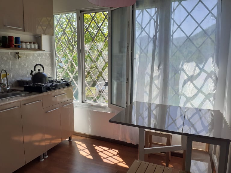 Ofrecemos alojamiento en un entorno agradable y tranquilo. Khashuri es un pequeño pueblo ubicado literalmente en las rutas de “cruce de caminos” desde la capital Tiflis y Gori hacia el sur (Borjomi – Bakuriani – Akhaltsikhe – Vardzia). Para nuestros huéspedes está disponible todo el primer piso de la casa. Ofrecemos tres habitaciones (dos habitaciones dobles, una habitación cuádruple) más cocina. El baño es compartido y se encuentra en la planta baja.