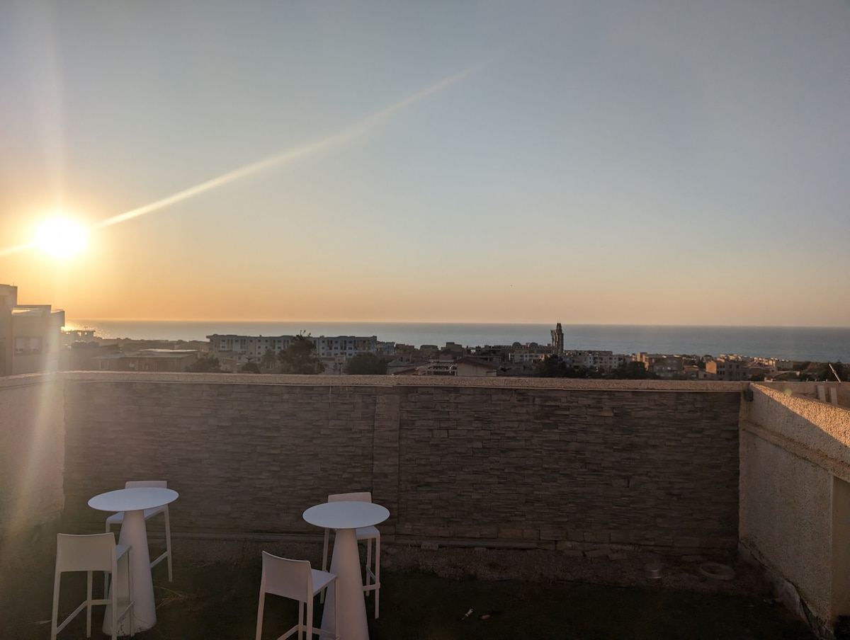 Relájate en un espacio tranquilo y elegante con impresionantes vistas al mar y a la montaña Chenoua a solo 45 minutos de la capital Argel. No es necesario viajar muy lejos, Santorini llega a tu puerta... con terraza, barbacoa y piscina al aire libre refrescante y relajante con chorros de masaje y cascada (no climatizada) ideal para el verano, dándote la bienvenida para una experiencia especial...