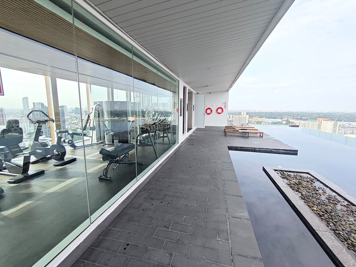 素坤逸市中心5分钟到BTS时尚现代公寓/无边泳池/全视野健身房/桑拿房/智能电视/超棒城市夜景