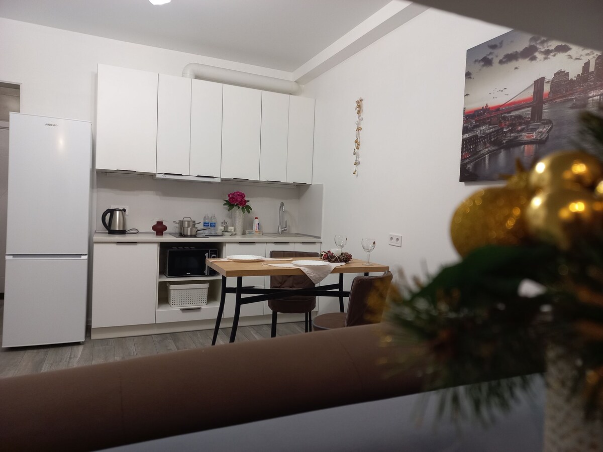 Apartamento nuevo, espacioso, acogedor y muy elegante (LOFT). El apartamento tiene 2 camas de matrimonio y un sofá cama. Casa nueva, aparcamiento gratuito vigilado, parque infantil, estadio. El apartamento está equipado con todos los electrodomésticos necesarios para una estancia cómoda: aire acondicionado, microondas, cocina, horno, lavadora, secador de pelo, plancha, televisores.