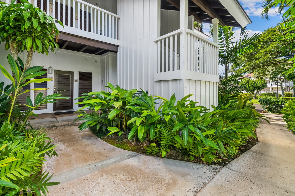 ¡El paraíso para los amantes de la playa! A 2 minutos a pie de la playa de Kiahuna ☞ Frente a la playa con vistas al jardín ☞ Acceso gratuito al centro vacacional * ☞ Patio trasero compartido + barbacoa + comedor ☞ Balcón privado con tumbonas ☞ Cocina totalmente equipada y surtida. Sistema de sonido☞ Bluetooth/AUX ☞ 50" QLED Roku TV Elementos básicos de☞ playa ☞ Estacionamiento → 1 coche A 5 minutos a pie del Centro Atlético de →Poipu A 6 minutos en coche de → DT Koloa.