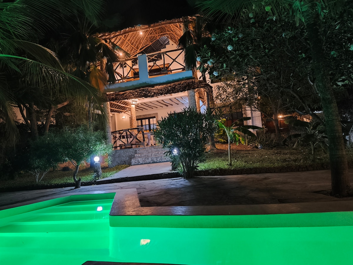 Casa de estilo suajili tradicional, se encuentra en el promontorio de coral con vistas al mar, playa, hermosos jardines de flores, acceso privado a la playa. Piscina instalada recientemente, CONSULTA LAS NORMAS DE LA CASA La villa tiene 2 niveles y vistas al océano Índico, acceso directo privado a la playa, que se extiende a ambos lados, dentro del Parque Marino. Incluye 3 empleados, cocinero y servicio diario a la habitación, y jardinero. Capacidad para 10 personas. Se adapta fácilmente y se hace cómodo para alojar grupos más pequeños, utilizando solo los dormitorios de arriba.