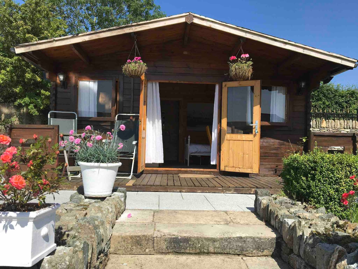 Chalet rústico tradicional de madera situado en una ubicación rural con baño privado, estacionamiento cerrado seguro gratuito, wifi rápido gratuito, registro de entrada y salida remoto, construcción sencilla limpia privada, seguro, tranquilo, romántico, acogedor, con cerradura, baño privado, climatizado, acogedor, chalet a lo largo de Wild Atlantic Way. Sauna y jacuzzi gratuitos. TV por satélite con Netflix. Capacidad para 2 personas en una cama tamaño king, pequeña cocina americana. Cerca de tiendas Derry, comida para llevar, calzada gigantes. Las instrucciones siguen las señales hacia Brackfield Bawn.