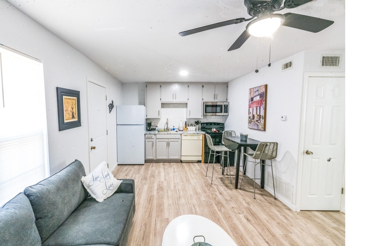 Relájate y sueña con París en un departamento de lujo y espacioso con 1 cama y 1 baño. Hermosamente decorado, completamente nuevo a solo 5 minutos de Fort Cavazos. Disfruta de una nevera de tamaño completo y todo lo que necesitas para cocinar. El gran dormitorio tiene mucho espacio, excelentes sábanas en la cama tamaño queen para un sueño relajante. Relájate después de un duro día de trabajo con una gran sala de estar en esta unidad de esquina. Recibimos a muchas familias militares que visitan Killeen, así como a soldados. Ya sea que necesites una estancia larga o corta, tenemos todo lo que necesitas.