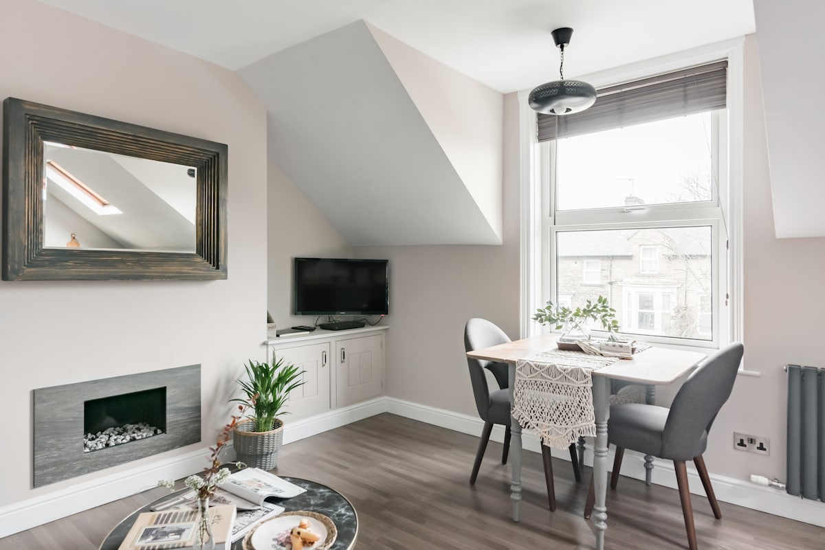 Disfruta de una estancia tranquila a pocos minutos del corazón de Harrogate. Ubicado en una calle tranquila, este moderno apartamento de estilo loft está perfectamente ubicado a pocos pasos de los populares cafés, tiendas y restaurantes de Cold Bath Road, y a pocos pasos del distrito de Montpellier y de los famosos Bettys Tearooms. Luminoso, espacioso y con acabados de alto nivel, el departamento ofrece una base elegante y cómoda para parejas, viajeros de negocios o exploradores de fin de semana.