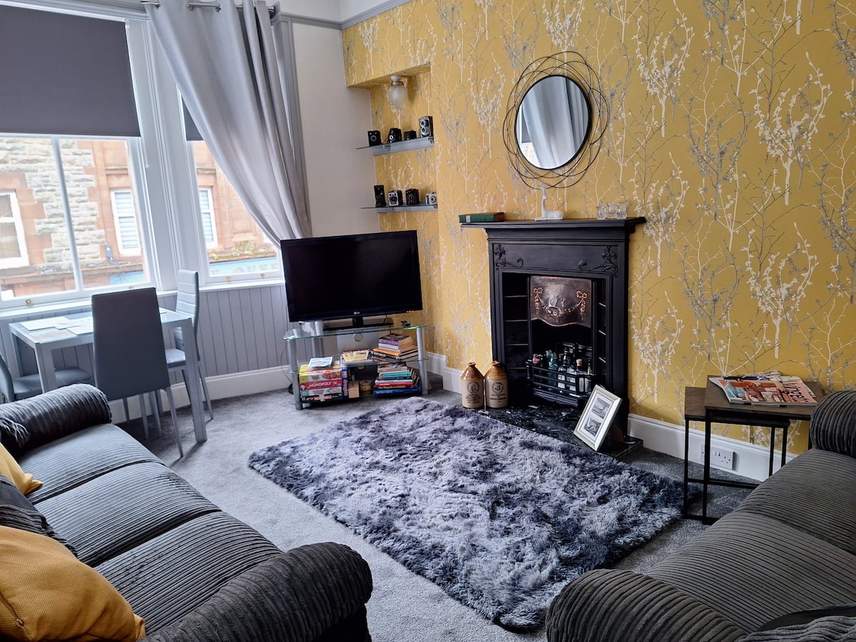 El apartamento 2/2 es un apartamento de un dormitorio en el segundo piso en el corazón de Campbeltown. El salón tiene un sofá de dos y tres plazas, TV, reproductor de DVD, wifi, mesa y cuatro sillas. Se accede a través de un sistema de entrada con teclado comunitario y tiene una caja de seguridad para llaves para la puerta del apartamento. Hay aparcamiento en la calle. Está cerca de todas las tiendas, bares, restaurantes y destilerías de whisky locales.