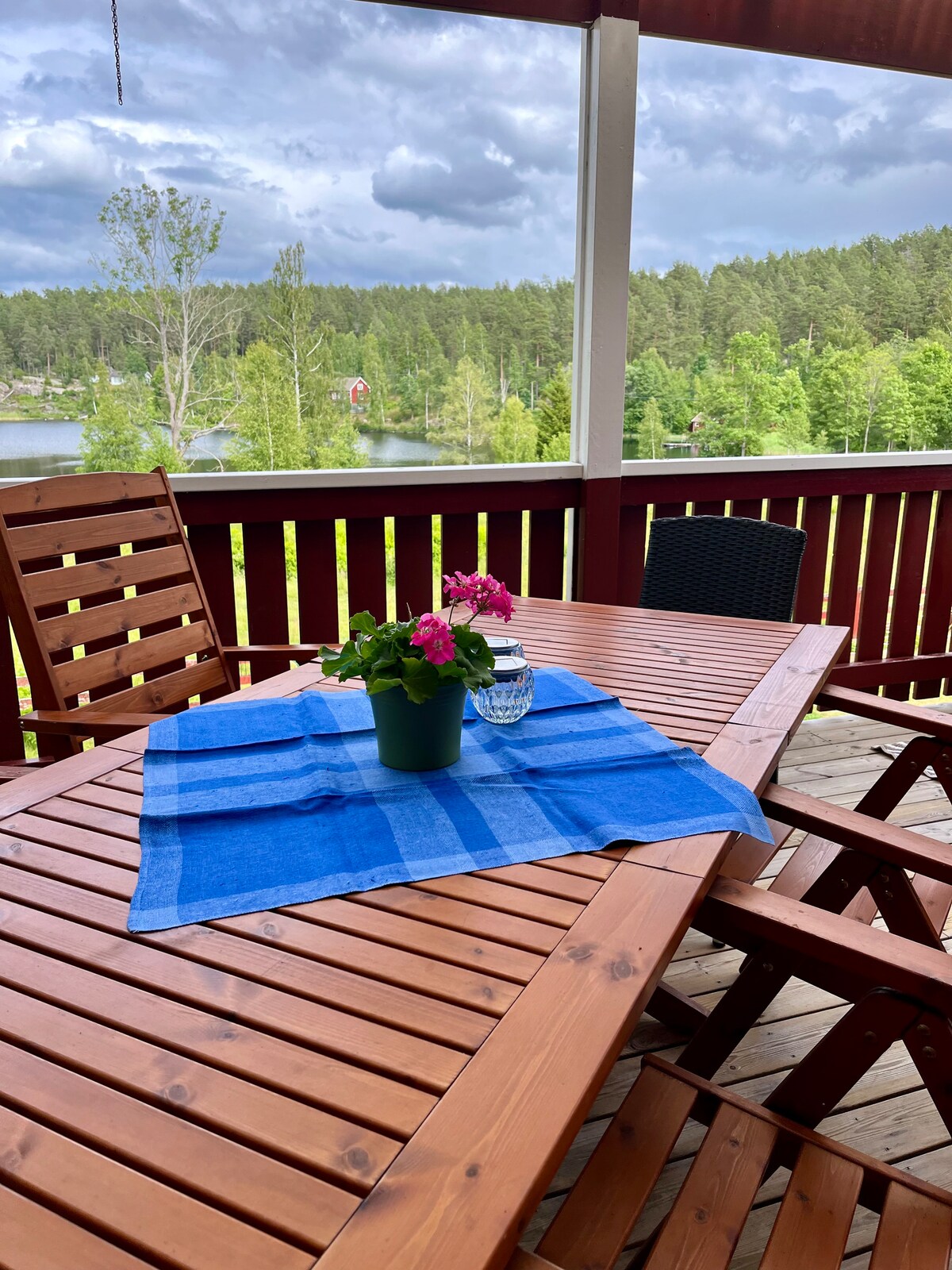 Este es un pequeño apartamento acogedor en una casa privada (los anfitriones viven en la casa de al lado). Vista al lago, nevera, estufa, baño con ducha, acceso a la lavandería, Wi-Fi, terraza con parrilla, embarcadero con bote de remos. A 3,5 km de Rimforsa con tienda de comestibles, restaurantes y una playa. Actividades: natación, excursiones en barco, senderismo, tenis, hermosos miradores para visitar, escalada en roca, cuevas, patines de hielo y esquí en invierno. Kayaks y sauna en renta. Bicicletas y botes de remos de uso gratuito. Linköping 35 min Kisa 10 min