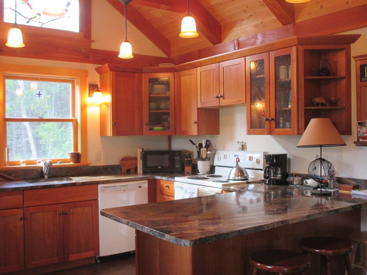 Nuestra acogedora casa es de nueva construcción, está bien equipada y decorada con buen gusto, escondida en un claro privado con acceso directo a la red Kingdom Trail y a las amplias pistas de motos de nieve, a pocos minutos de Burke Mountain y a poca distancia en coche del lago Willoughby. Justo al final de la carretera desde el pueblo de East Burke, estamos cerca de los servicios cercanos, pero en una ladera tranquila rodeada de naturaleza, la ubicación perfecta para una escapada de fin de semana, ya sea en bicicleta, esquí, el senderismo o la exploración del Reino del Noreste.