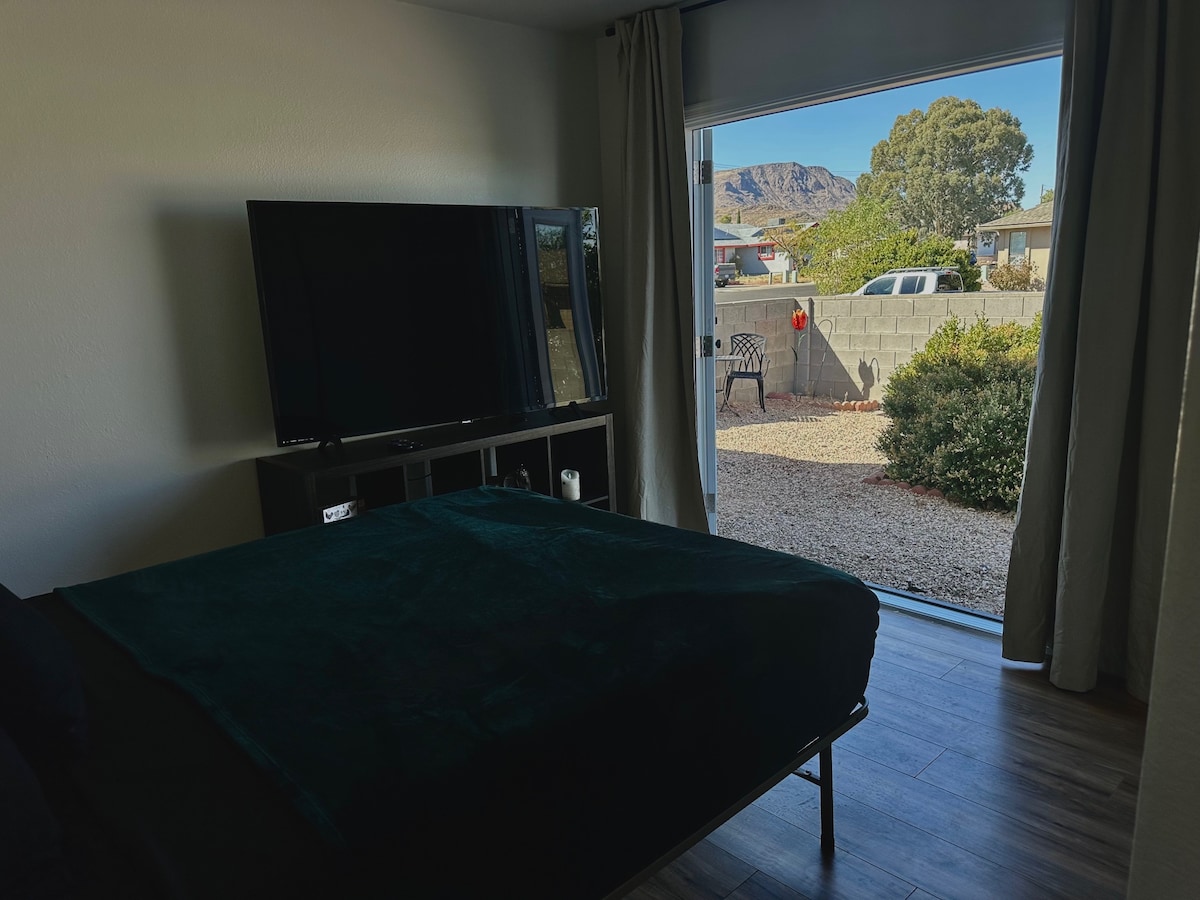 Nueva y elegante unidad triplex: esta casa de 1 dormitorio y 1 baño tiene capacidad para 4 personas y se encuentra en una ubicación perfecta a pocos minutos del centro médico regional, la I40, la Ruta 66 y el centro histórico de Kingman. La casa también está muy cerca de muchos restaurantes populares, campo de golf local e incluso Starbucks. Lo que separa esta casa de otras en la zona es que tienes tu propio patio, patio cubierto, lavadora y secadora y todos los utensilios para comer y beber junto con una nevera de tamaño completo, barbacoa de gas al aire libre, Smart TV, etc.