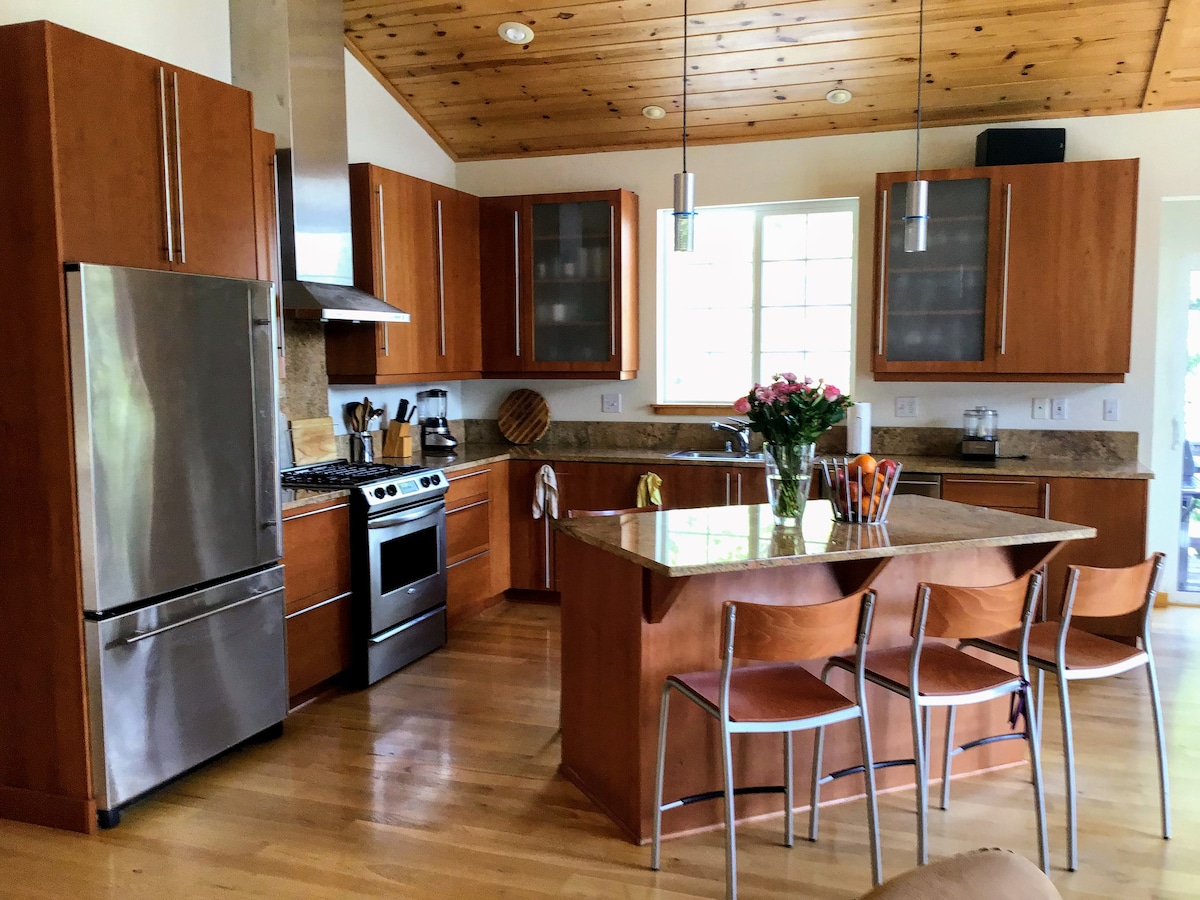 Modern Mountain Retreat Upper Unit es toda la planta superior (1600 pies cuadrados) de una casa de 2 pisos, completamente separada de la planta inferior, con tu propia entrada privada a través de la puerta principal. *El precio incluye impuestos. 2 dormitorios, 2 baños, chimenea, sauna seca, bañera de hidromasaje, totalmente amueblado, calefacción central, lavadora/secadora, lavavajillas, terraza grande, vistas al lago desde la sala de estar, cocina, terraza. ¡Wifi de 400 Mbps! Acceso privado a la playa a 5 minutos en coche. Rutas cercanas para practicar senderismo y ciclismo. Productos antibacterianos utilizados en la limpieza.