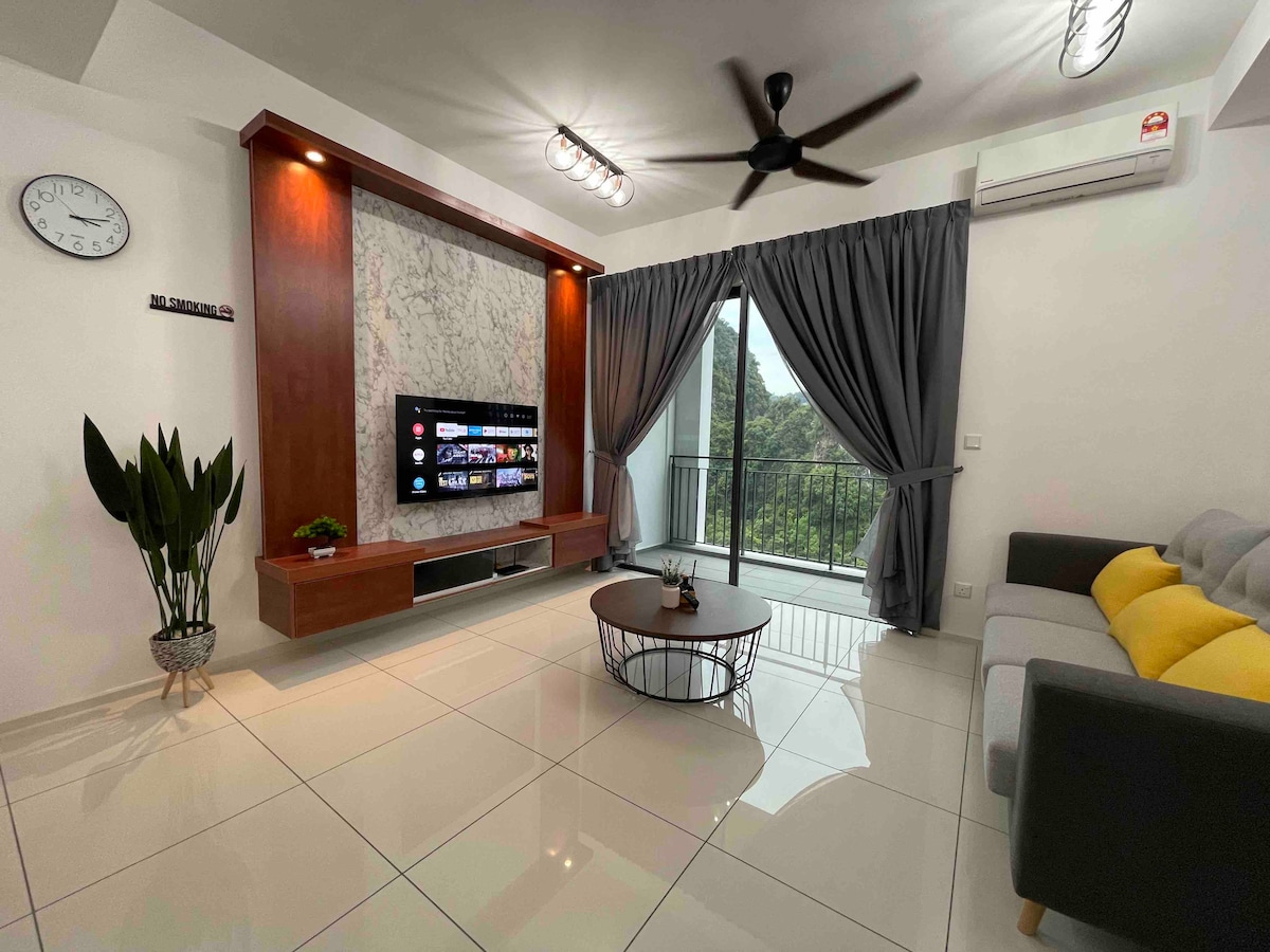 Un lugar estupendo para una reunión familiar con wifi, Netflix y cocina totalmente equipada con filtro de agua y lavandería con secadora, zona en la azotea para contemplar las estrellas y un juego de barbacoa para alquilar. Aunque está dentro de la ciudad de Ipoh, es un lugar muy tranquilo para relajarse. Instalaciones como restaurantes, centros de comida, bancos, clínicas, farmacias, iglesia, mezquita, gasolinera y una piscina pública se encuentran a 500 metros. Sin cargo adicional por limpieza ni huéspedes adicionales.
