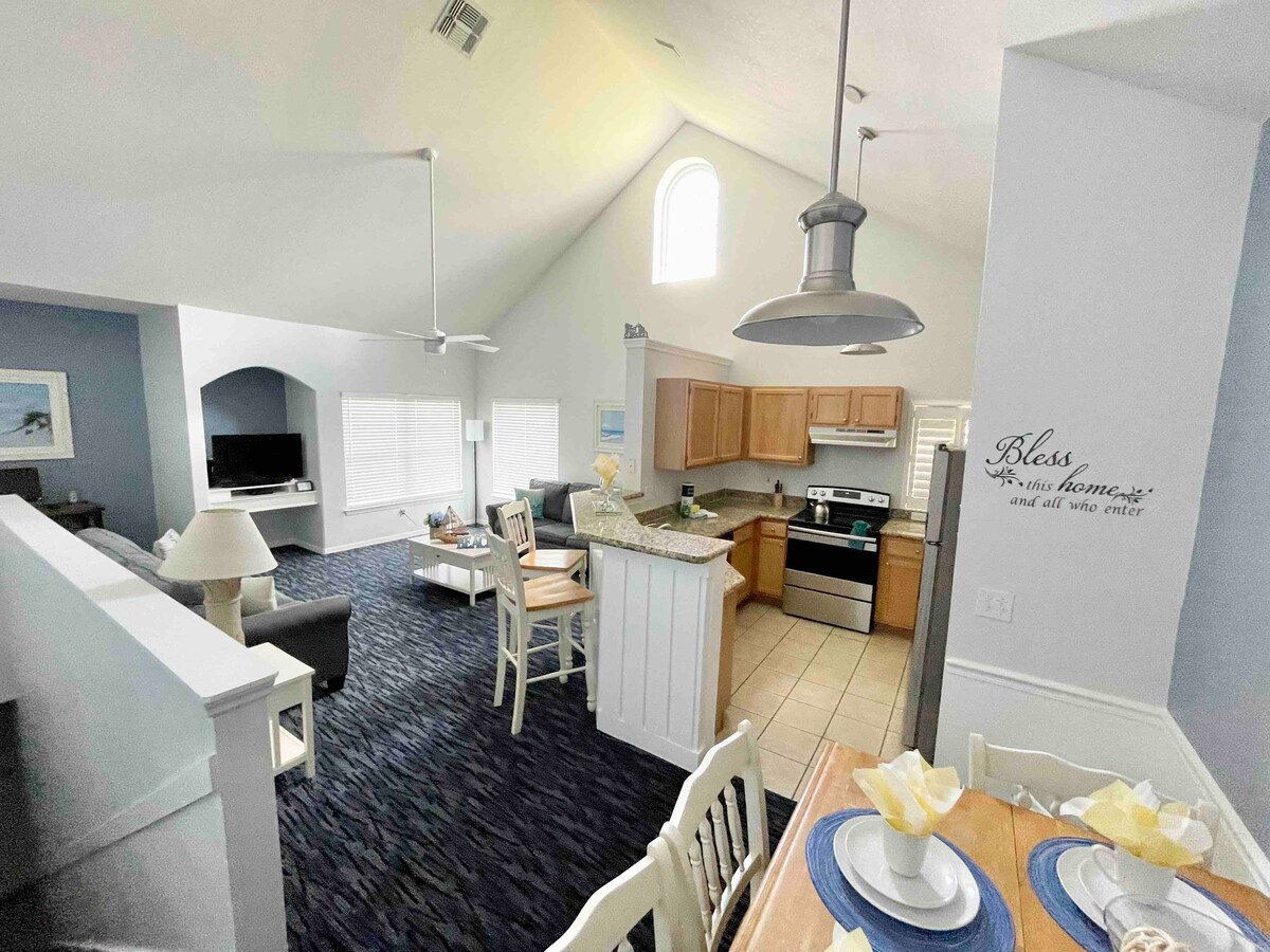 ¡Bienvenido a Runaway Beach Club, tu escapada tranquila a pocos minutos de la magia! Con techos altos y aireados y una decoración al estilo de Key West, te sentirás como en casa en el momento en que entres. Ya sea que estés visitando parques temáticos o simplemente quieras relajarte, este acogedor refugio está escondido del caos, pero cerca de todo. Ideal para parejas, familias pequeñas o viajeros de negocios. ¡Reserva tu estancia y relájate en tu propio pedazo de paraíso privado!