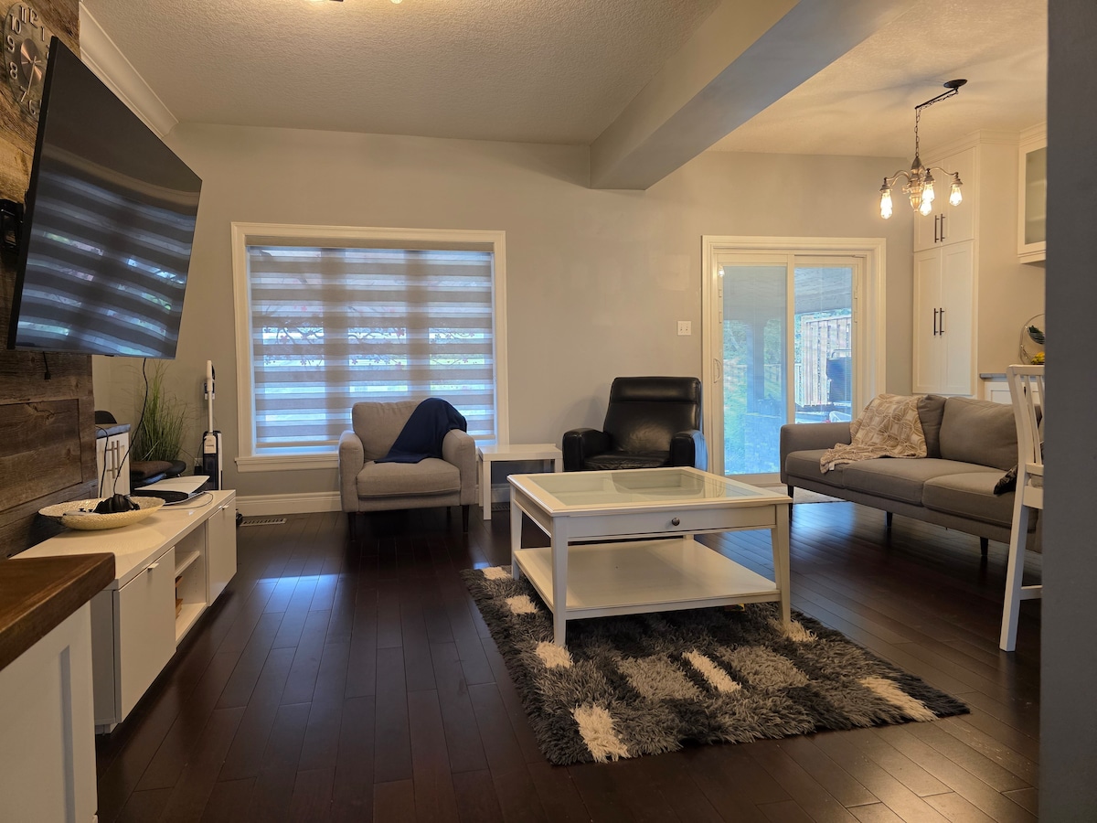 Acogedor y tranquilo apartamento de un dormitorio en el centro de Guelph con acceso privado, baño de 4 piezas, cocina comedor con microondas, horno tostador, placa de inducción de 1 quemador y mininevera. Relajante sala de estar con TV de 43 pulgadas, HD y compatible con Roku. Aparcamiento gratuito en la calle durante la noche. Estamos a 2 minutos a pie del restaurante más cercano. A 10 minutos a pie hay más restaurantes, bancos, tiendas, tiendas de comestibles y parques. A partir del 1 de febrero de 2024, hemos tenido que añadir un 13 % a nuestra tarifa por noche para cubrir el impuesto sobre las ventas.