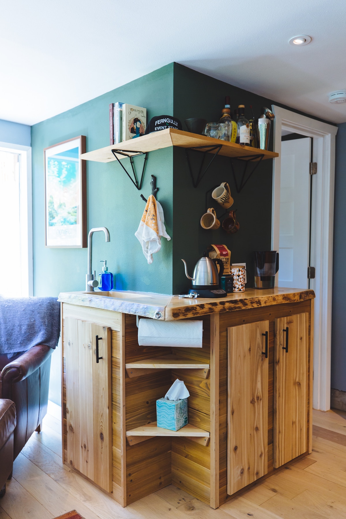 Casa de huéspedes aislada, luminosa y moderna con vistas completas al jardín, a 5 minutos de la autopista y a 10 minutos del ferry en el oeste de Bremerton. El espacio es una unidad independiente separada de nuestra casa principal escondida de la calle principal, enclavada entre los cedros y abetos a lo largo de Mud Bay que conecta con Puget Sound. La habitación tiene una vista completa de 270 grados de los jardines y árboles, cama tamaño queen murphy, nevera, fregadero, microondas, estufa de leña y baño, completo con ducha de lluvia al aire libre de 16 pulgadas.